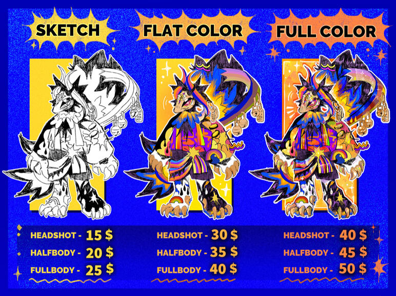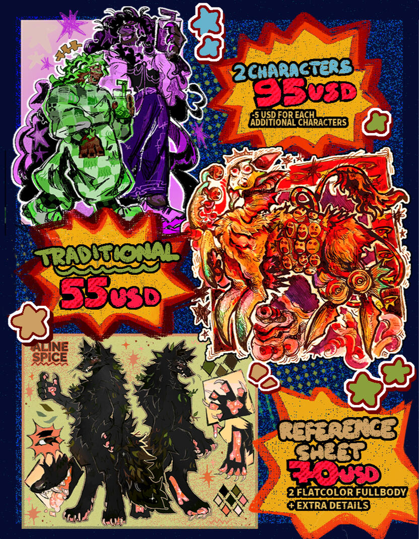 • I usually won't post the results on socials but if i do i'll ask you for it :) you however can post my art on socials as much as you want as long as credits are here